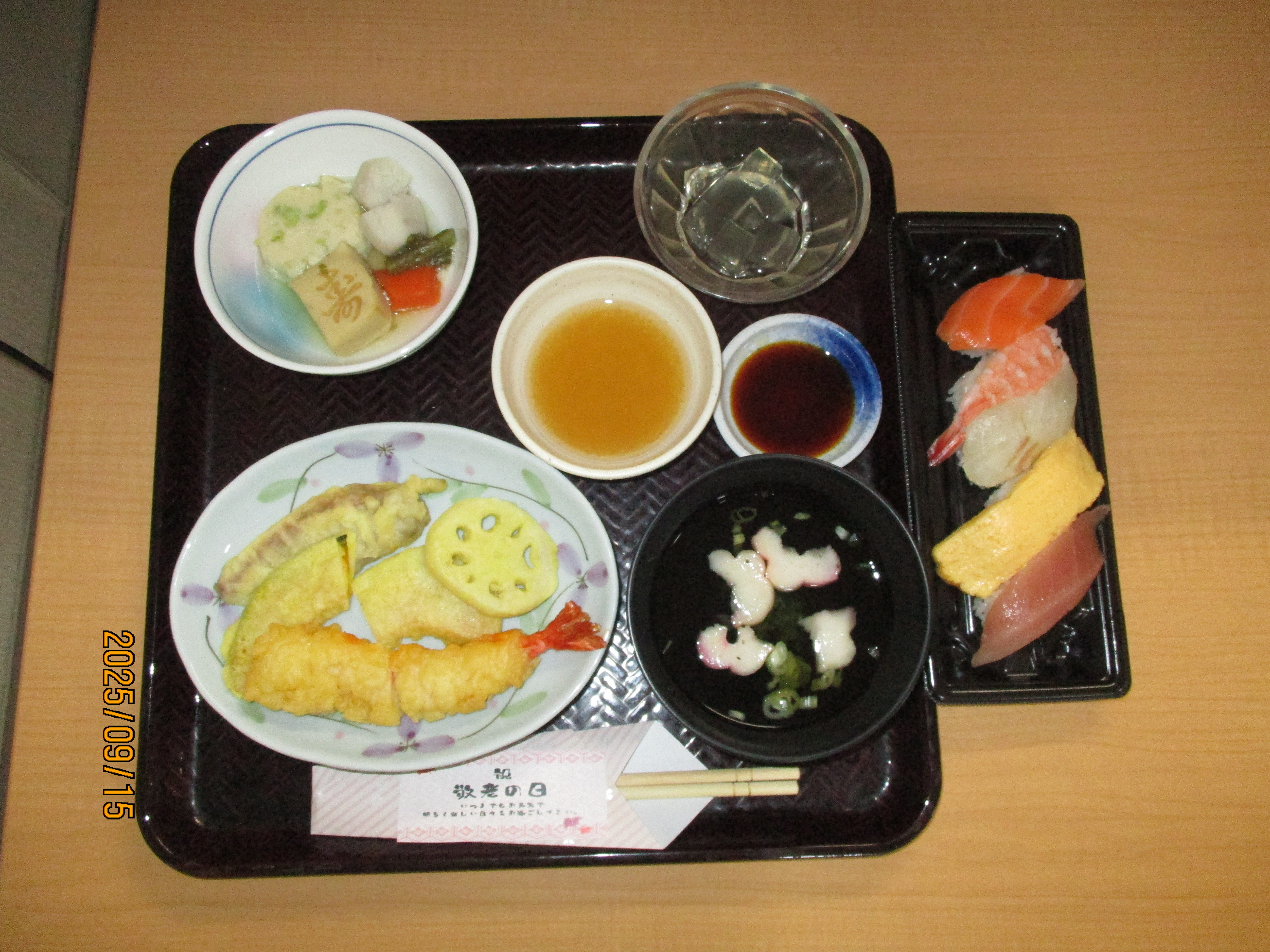 今年のお食事はお寿司と天ぷらでした。皆さん美味しかったと喜ばれていました